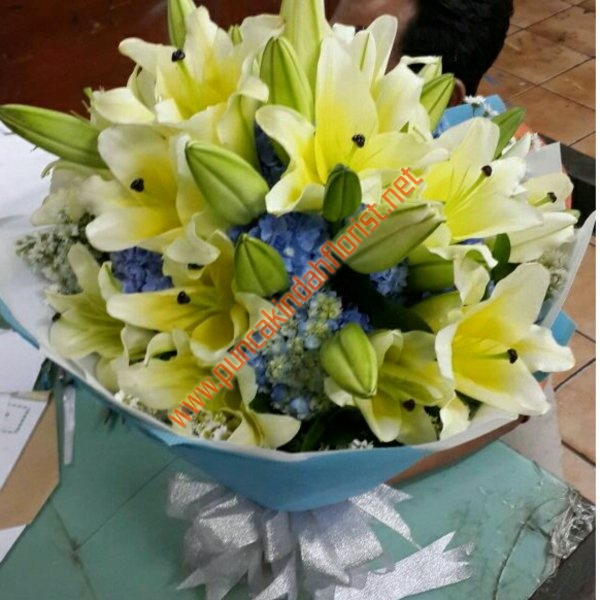 Hanbouqet lily pompay impor kombinasi hortencia blue (handbouqet kuran besar)