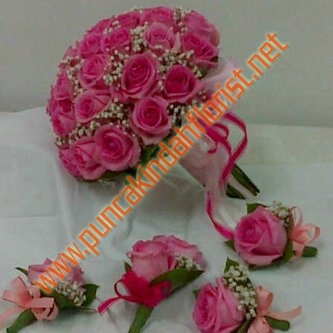 Buket Roses Holland Pink dan Korsase rose kombinasi baby breath.
